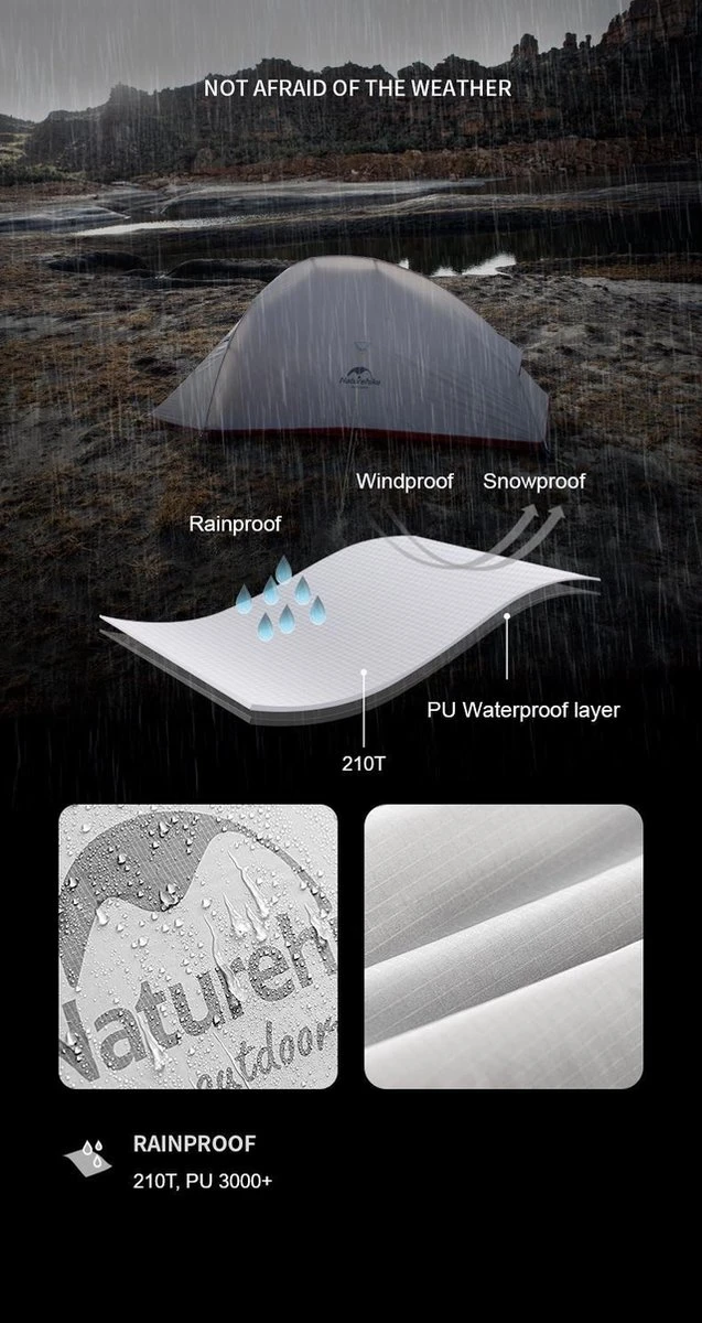 Deze prachtige lichtgewicht tent van Naturehike biedt je optimaal comfort tijdens al je meerdaagse outdoor activiteiten.