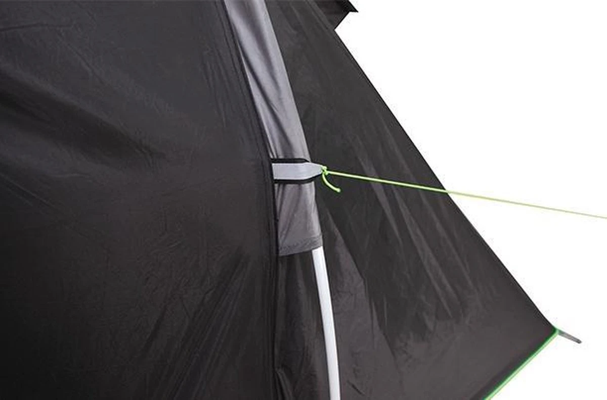 De 8 organizers, 4 opbergvakken in de binnententen en lampenhouder verhogen het comfort. De leefruimte beschikt voorts over een folievenster, muggengaasvenster en wegneembaar, eenvoudig te reinigen grondzeil. De deur van de ingang kan gebruikt worden als zonneluifel (luifelstokken meegeleverd), ideaal bij warme dagen. De 2 tegenover elkaar liggende vario ventilaties zorgen ook bij regenweer voor een goede luchtcirculatie en een rustgevende slaap. Hou de ventilaties daarom ook altijd open. De tent beschikt over sterke ritssluitingen en reflecterende scheerlijnen voor meer zichtbaarheid. De zeer stabiele 5 mm staal-grondpennen gaan niet buigen bij een harde ondergrond. Voor het afspannen van de tent en het vastzetten van de scheerlijnen zorgen speciale 5mm staal-grondpennen met haken voor een betere grip in de grond. De afdekflap van de ritssluitingen heeft een regengoot die het indringen van water verhindert. De binnentent is uitgerust met de High Peak Vario Vent Control: de muskieteningang houdt vervelende insecten uit de tent en kan van binnenuit variabel bediend worden a.h.v. een afdekflap. Deze berg je makkelijk op in het daarvoor voorziene vak. De 2 hoge ventilaties verluchten de binnentent ook bij gesloten Vario Vent Control.