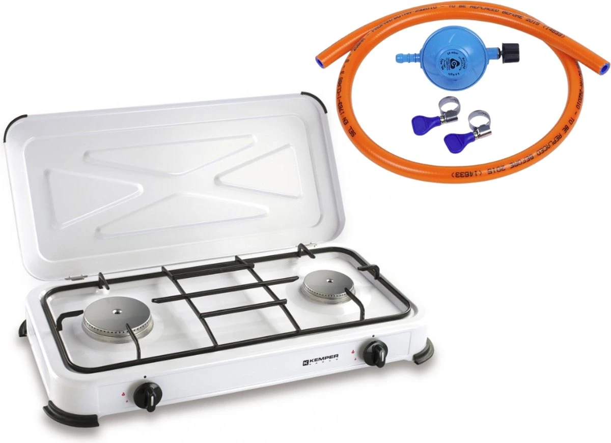 Dit Kemper gas kooktoestel beschikt over 2 krachtige RVS branders. De 2 gaspitten zorgen ervoor dat je zeer gevarieerd kunt koken. De deksel van het gas kooktoestel kan ook gebruikt worden als windscherm voor wanneer het toestel in de buitenlucht of op de camping wordt gebruikt. De 2 gaspitten van het gaskooktoestel zitten stevig vast gemonteerd, waardoor deze bij het vervoeren van het product niet zomaar verschuiven.