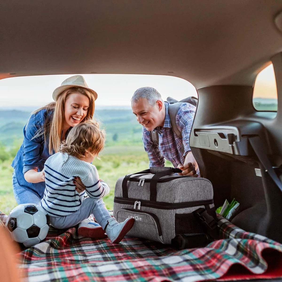 - GROTE CAPACITEIT: Premium PEVA biedt grote thermische weerstand om voedsel vers en warm / koud te houden. Groot genoeg voor het hele gezin picknickbenodigdheden en klein genoeg om niet omslachtig te zijn, het is ideaal voor kamperen, wandelen, BBQ’s, etc.
