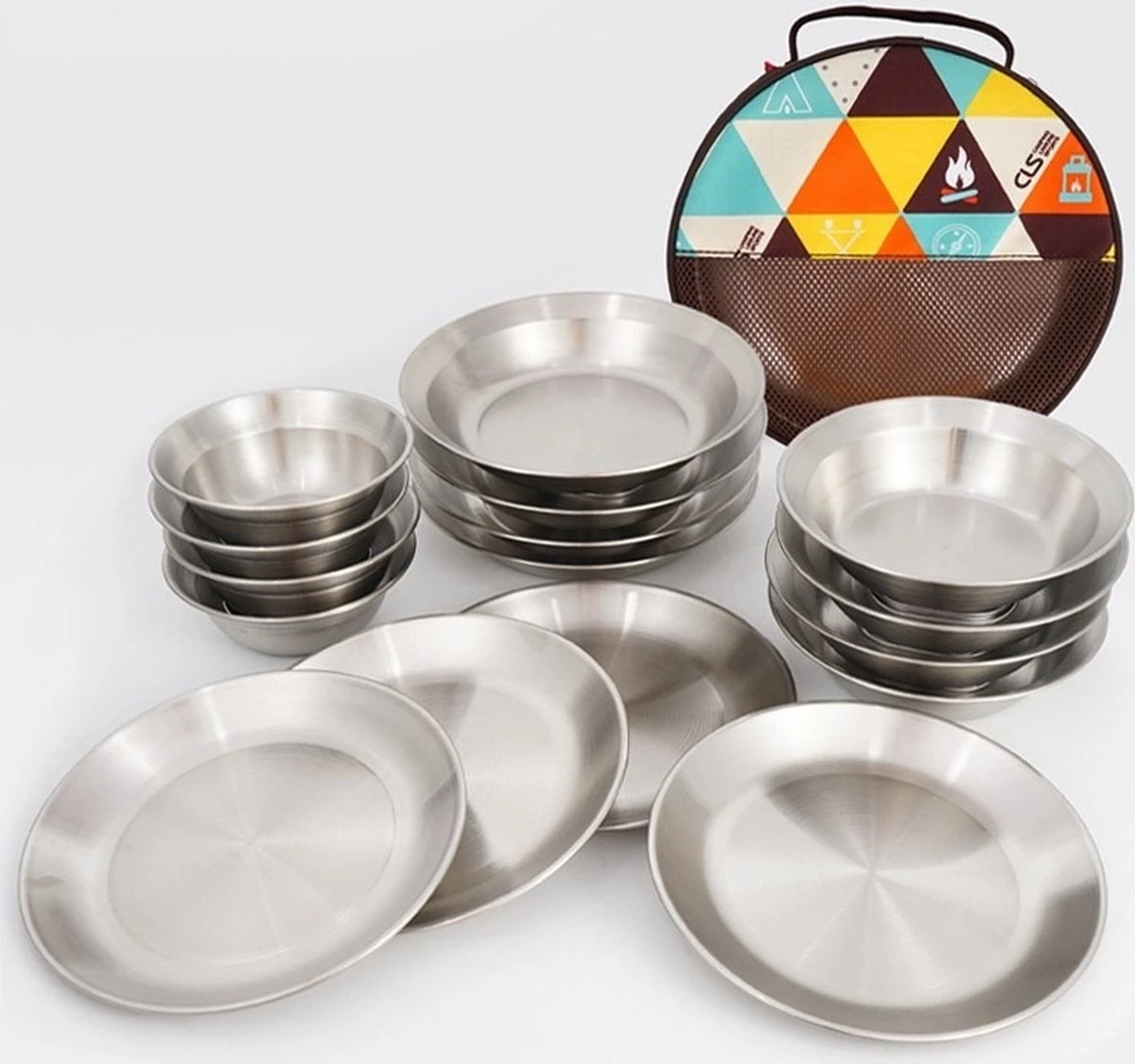 Be the first to review “Merkloos Kampeerservies Roestvrijstaal Borden En Kommen 16-delig Servies RVS” Reactie annuleren