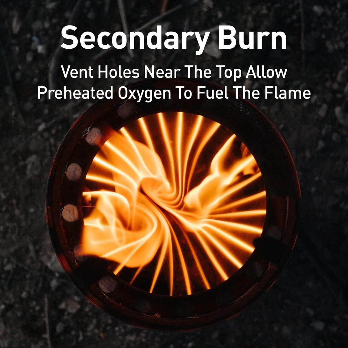 De Solo Stove LIte laat je genieten van een super efficiënte vlam met niets meer dan een paar takjes en twijgen die je langs je route vindt. Het 360° luchtstroomontwerp zuigt lucht aan via de onderste ventilatiegaten die wordt verwarmt in de dubbelwandige constructie van de Solo Stove Lite. De verwarmde lucht ontbrandt na het verlaten van de bovenste ventilatieopeningen, waardoor een spectaculaire secundaire ontbranding ontstaat. Dit betkent een heter vuur met minder rook!