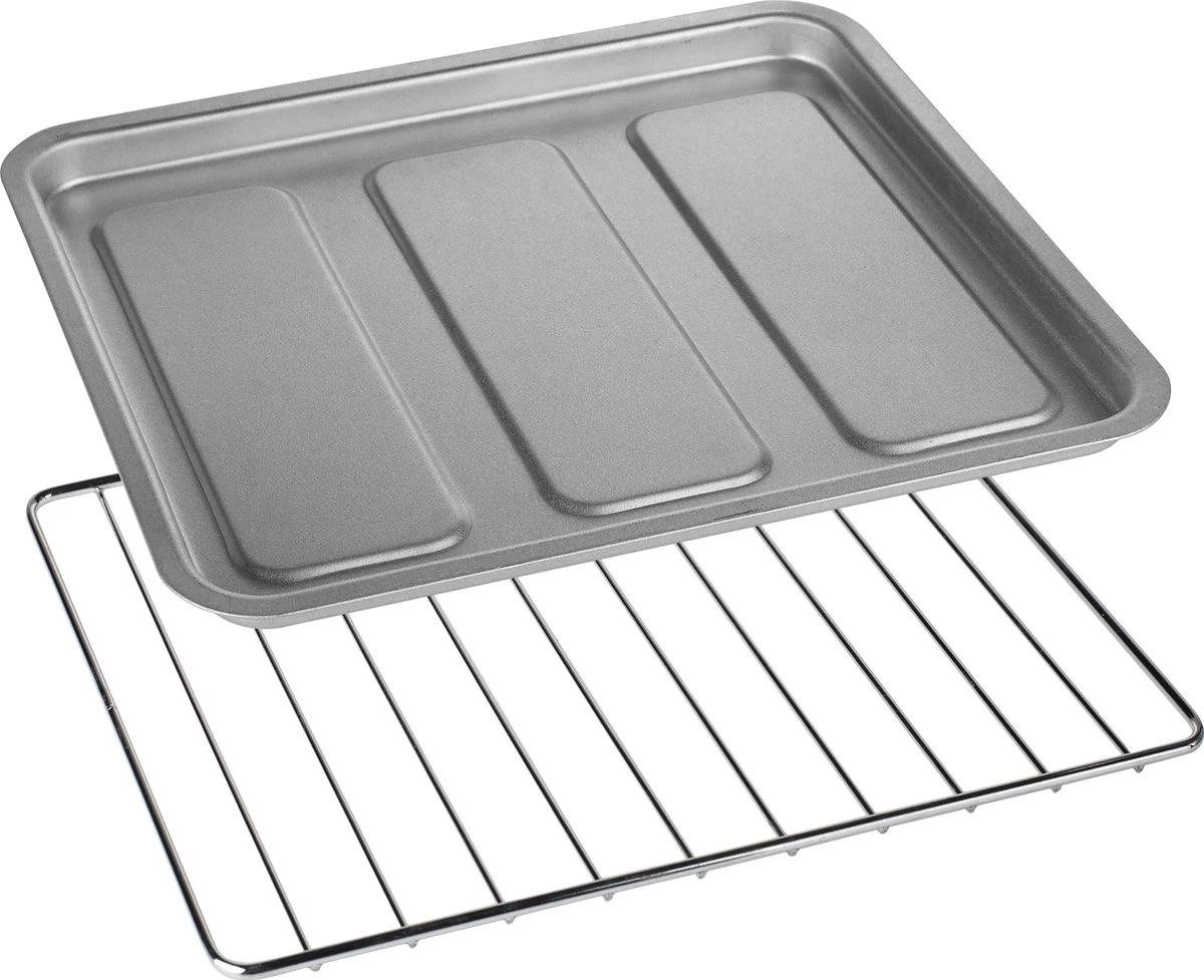 Verder is de mini oven van alle gemakken voorzien. Zo is deze uitgerust met een bakplaat en grillrooster voor onder andere het afbakken van broodjes en lekkere koekjes. Daarnaast zit er een handvat bij voor het uitnemen van de plaat en het rooster. Zo verbrand jij je niet zomaar aan hete onderdelen en is een ovenwant niet persé meer nodig.