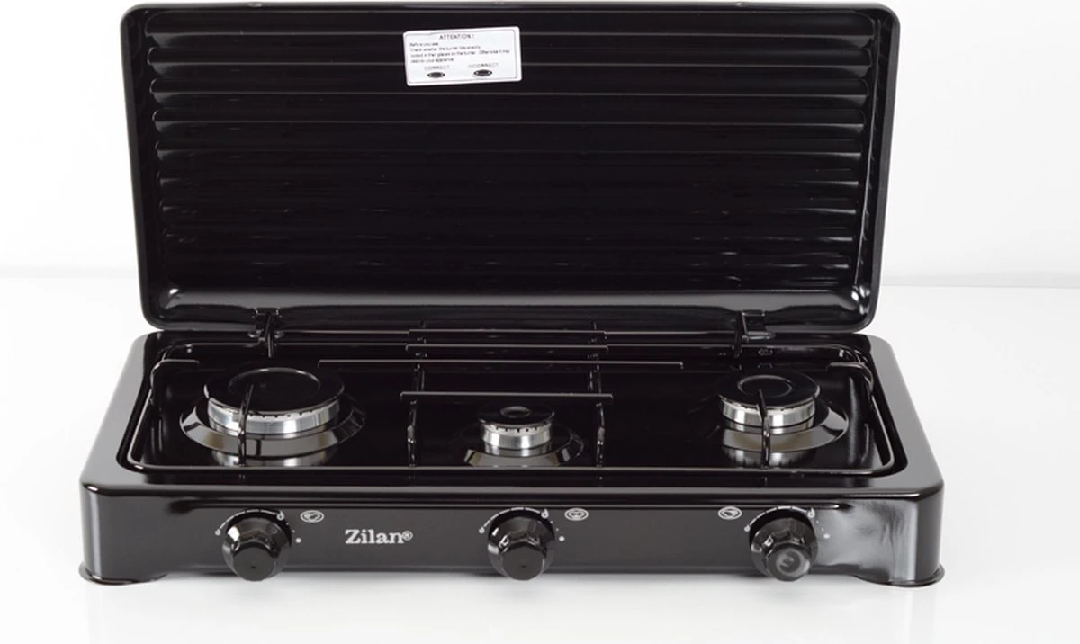 Robuuste en ruime 3 pits campingkooktoestel van Zilan. Ideaal voor op de camping.